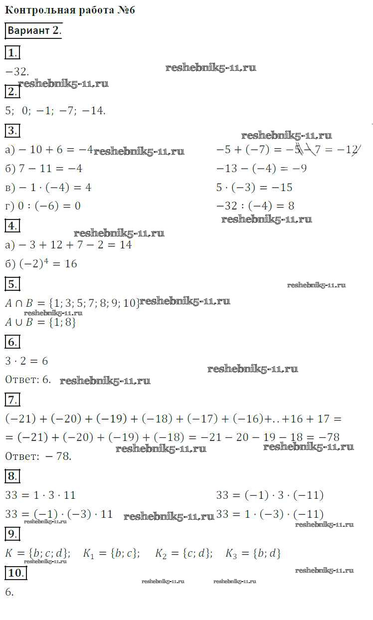 Готовая домашняя работа с ответами по Математике за 6 класс Кузнецова, Минаева, Рослова, Суворова Контрольные работы Просвещение 2017 ФГОС - КР-6. Варианты 2
