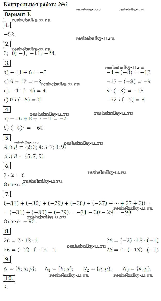 Готовая домашняя работа с ответами по Математике за 6 класс Кузнецова, Минаева, Рослова, Суворова Контрольные работы Просвещение 2017 ФГОС - КР-6. Варианты 4