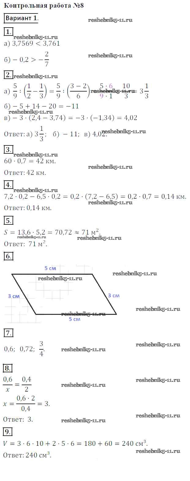 Готовая домашняя работа с ответами по Математике за 6 класс Кузнецова, Минаева, Рослова, Суворова Контрольные работы Просвещение 2017 ФГОС - КР-8. Варианты 1