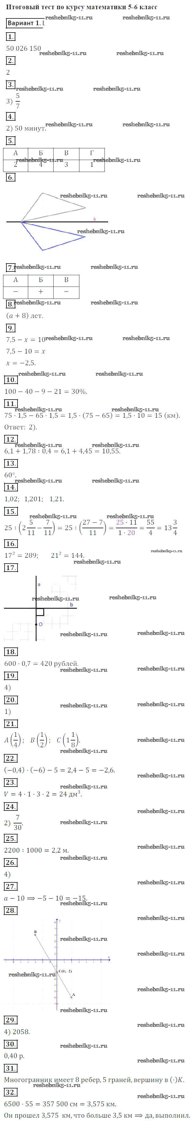Готовая домашняя работа с ответами по Математике за 6 класс Кузнецова, Минаева, Рослова, Суворова Контрольные работы Просвещение 2017 ФГОС - Итоговый тест 1