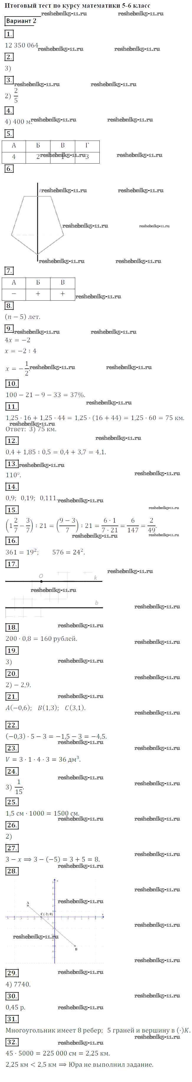 Готовая домашняя работа с ответами по Математике за 6 класс Кузнецова, Минаева, Рослова, Суворова Контрольные работы Просвещение 2017 ФГОС - Итоговый тест 2