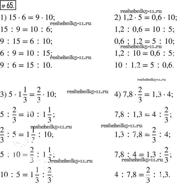 Готовая домашняя работа с ответами по Математике за 6 класс Муравин, Муравина Учебник Вертикаль Дрофа 2016 ФГОС - §3. Отношения и пропорции 65