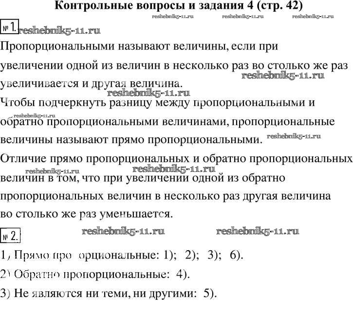 Готовая домашняя работа с ответами по Математике за 6 класс Муравин, Муравина Учебник Вертикаль Дрофа 2016 ФГОС - §4. Пропорциональные величины Контрольные вопросы и задания