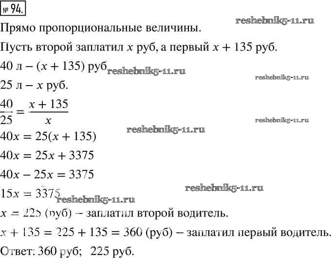Готовая домашняя работа с ответами по Математике за 6 класс Муравин, Муравина Учебник Вертикаль Дрофа 2016 ФГОС - §4. Пропорциональные величины 94