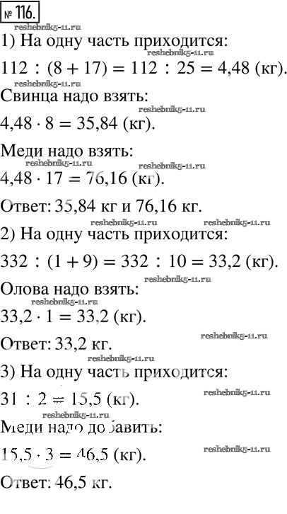 Готовая домашняя работа с ответами по Математике за 6 класс Муравин, Муравина Учебник Вертикаль Дрофа 2016 ФГОС - §5. Деление в данном отношении 116