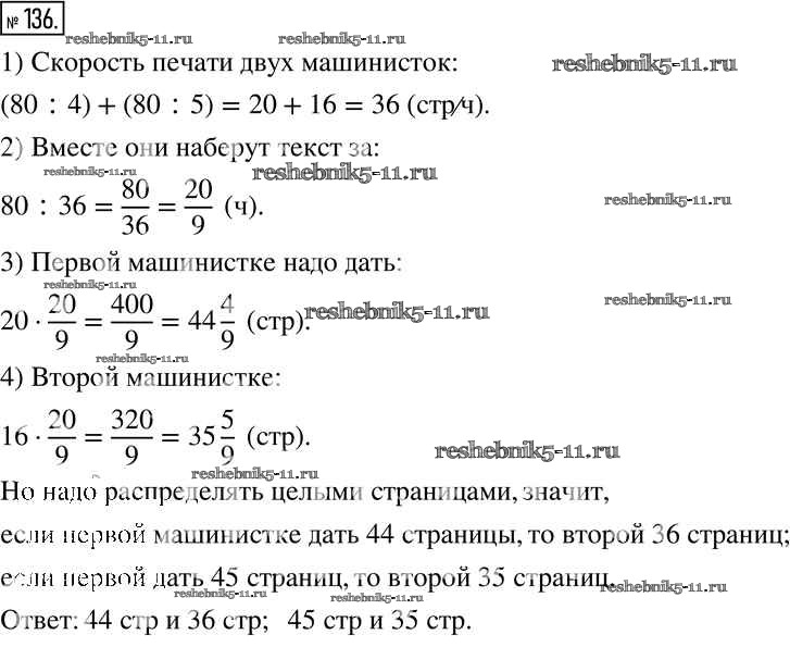 Готовая домашняя работа с ответами по Математике за 6 класс Муравин, Муравина Учебник Вертикаль Дрофа 2016 ФГОС - §5. Деление в данном отношении 136