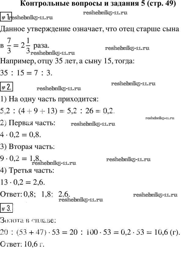 Готовая домашняя работа с ответами по Математике за 6 класс Муравин, Муравина Учебник Вертикаль Дрофа 2016 ФГОС - §5. Деление в данном отношении Контрольные вопросы и задания