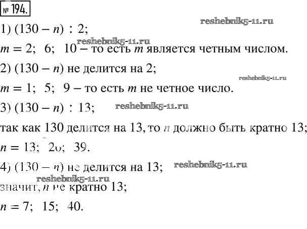 Готовая домашняя работа с ответами по Математике за 6 класс Муравин, Муравина Учебник Вертикаль Дрофа 2016 ФГОС - §7. Свойства делимости произведения, суммы и разности чисел 194
