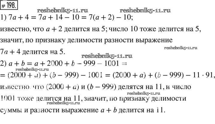 Готовая домашняя работа с ответами по Математике за 6 класс Муравин, Муравина Учебник Вертикаль Дрофа 2016 ФГОС - §7. Свойства делимости произведения, суммы и разности чисел 198