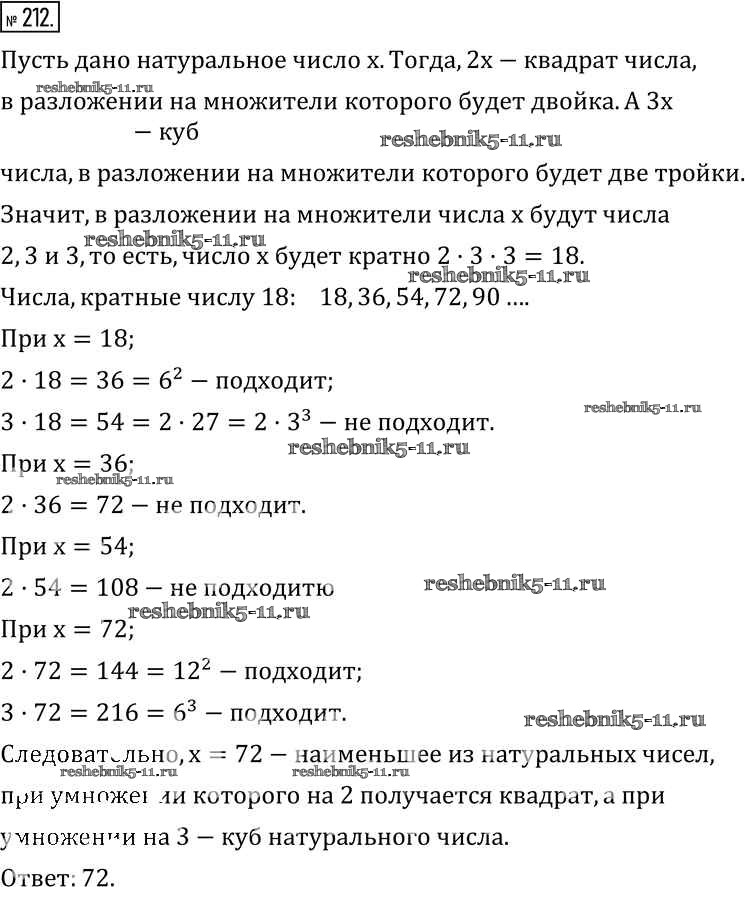 Готовая домашняя работа с ответами по Математике за 6 класс Муравин, Муравина Учебник Вертикаль Дрофа 2016 ФГОС - §7. Свойства делимости произведения, суммы и разности чисел 212