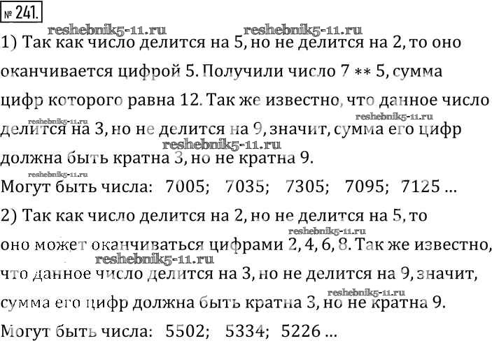 Готовая домашняя работа с ответами по Математике за 6 класс Муравин, Муравина Учебник Вертикаль Дрофа 2016 ФГОС - §8. Признаки делимости натуральных чисел 241