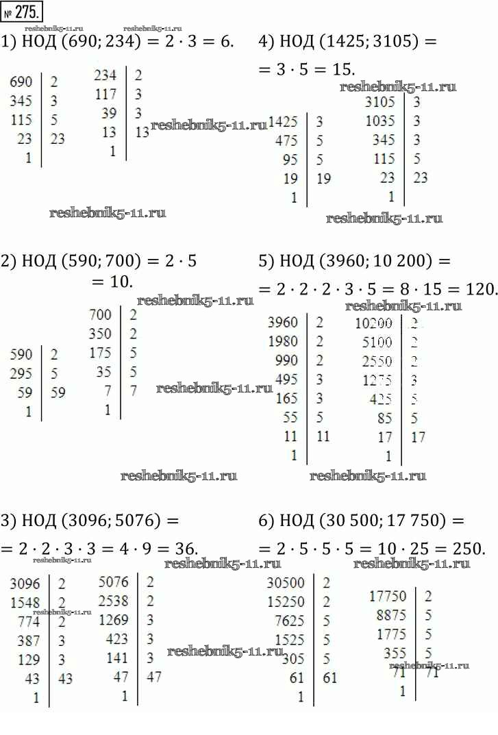 Готовая домашняя работа с ответами по Математике за 6 класс Муравин, Муравина Учебник Вертикаль Дрофа 2016 ФГОС - §9. Простые и составные числа 275