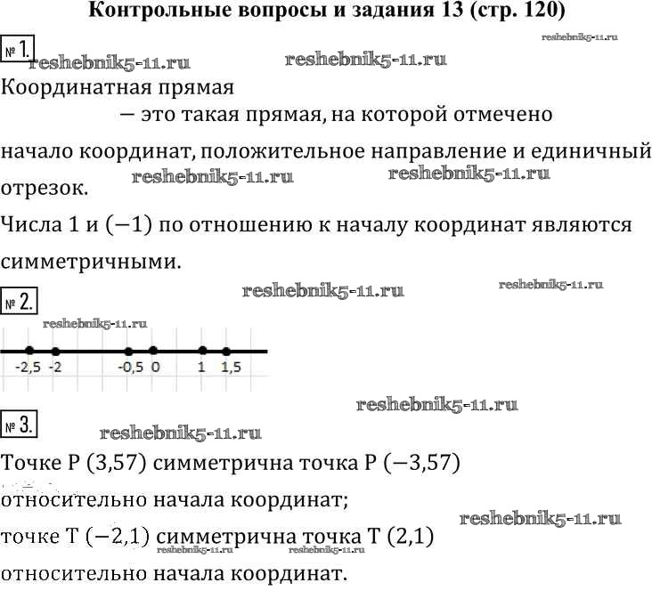 Готовая домашняя работа с ответами по Математике за 6 класс Муравин, Муравина Учебник Вертикаль Дрофа 2016 ФГОС - §13. Отрицательные числа и их изображение на координатной прямой Контрольные вопросы и задания