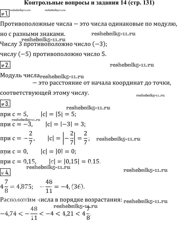 Математика за 6 класс Муравин Учебник Вертикаль Дрофа §14 Контрольные вопросы и задания