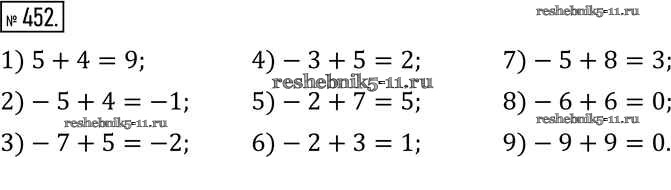 Готовая домашняя работа с ответами по Математике за 6 класс Муравин, Муравина Учебник Вертикаль Дрофа 2016 ФГОС - §15. Сложение и вычитание чисел 452