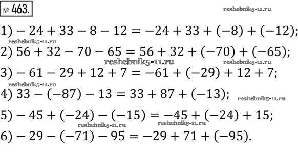 Готовая домашняя работа с ответами по Математике за 6 класс Муравин, Муравина Учебник Вертикаль Дрофа 2016 ФГОС - §15. Сложение и вычитание чисел 463