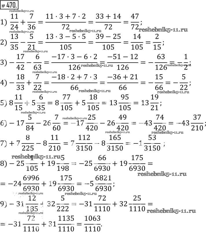 Готовая домашняя работа с ответами по Математике за 6 класс Муравин, Муравина Учебник Вертикаль Дрофа 2016 ФГОС - §15. Сложение и вычитание чисел 470