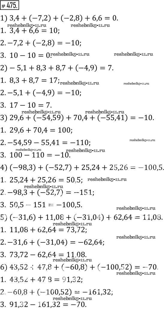 Готовая домашняя работа с ответами по Математике за 6 класс Муравин, Муравина Учебник Вертикаль Дрофа 2016 ФГОС - §15. Сложение и вычитание чисел 475