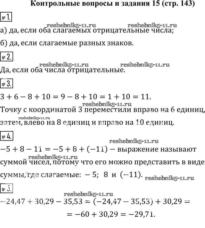 Готовая домашняя работа с ответами по Математике за 6 класс Муравин, Муравина Учебник Вертикаль Дрофа 2016 ФГОС - §15. Сложение и вычитание чисел Контрольные вопросы и задания