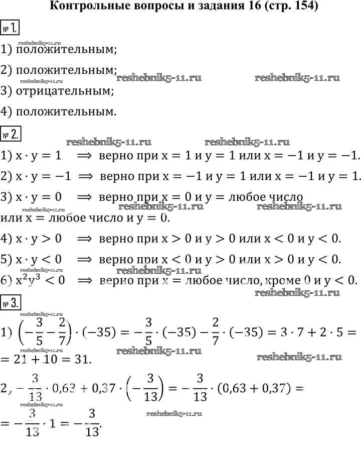 Готовая домашняя работа с ответами по Математике за 6 класс Муравин, Муравина Учебник Вертикаль Дрофа 2016 ФГОС - §16. Умножение чисел Контрольные вопросы и задания