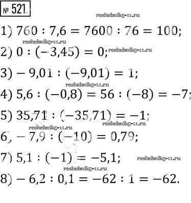 Готовая домашняя работа с ответами по Математике за 6 класс Муравин, Муравина Учебник Вертикаль Дрофа 2016 ФГОС - §17. Деление чисел 521