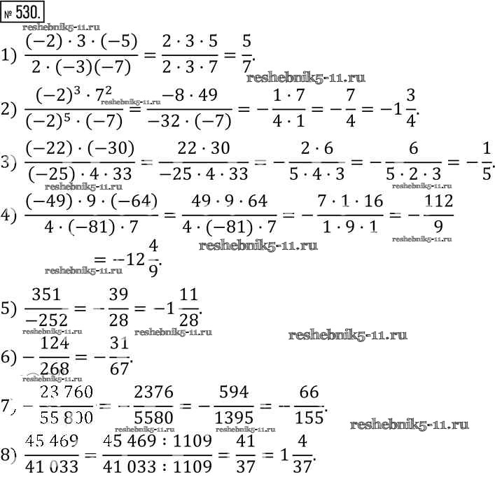Готовая домашняя работа с ответами по Математике за 6 класс Муравин, Муравина Учебник Вертикаль Дрофа 2016 ФГОС - §17. Деление чисел 530