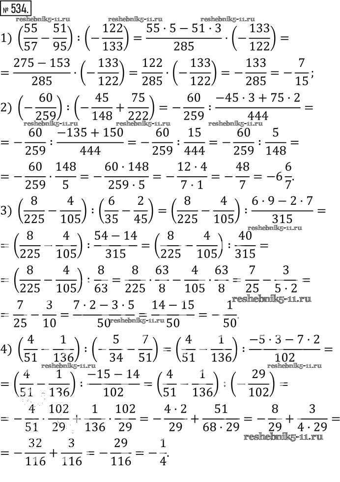 Готовая домашняя работа с ответами по Математике за 6 класс Муравин, Муравина Учебник Вертикаль Дрофа 2016 ФГОС - §17. Деление чисел 534