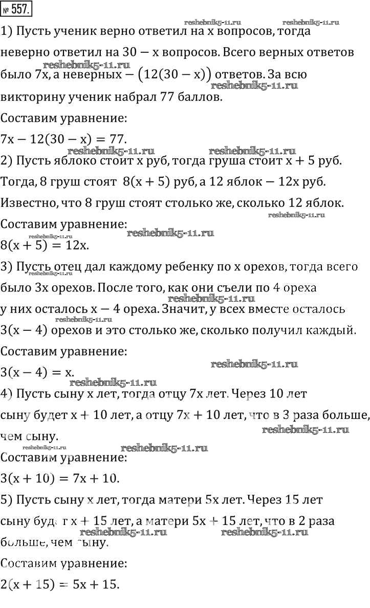 Готовая домашняя работа с ответами по Математике за 6 класс Муравин, Муравина Учебник Вертикаль Дрофа 2016 ФГОС - §18. Решение уравнений 557