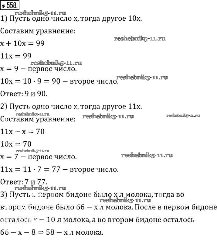 Готовая домашняя работа с ответами по Математике за 6 класс Муравин, Муравина Учебник Вертикаль Дрофа 2016 ФГОС - §18. Решение уравнений 558