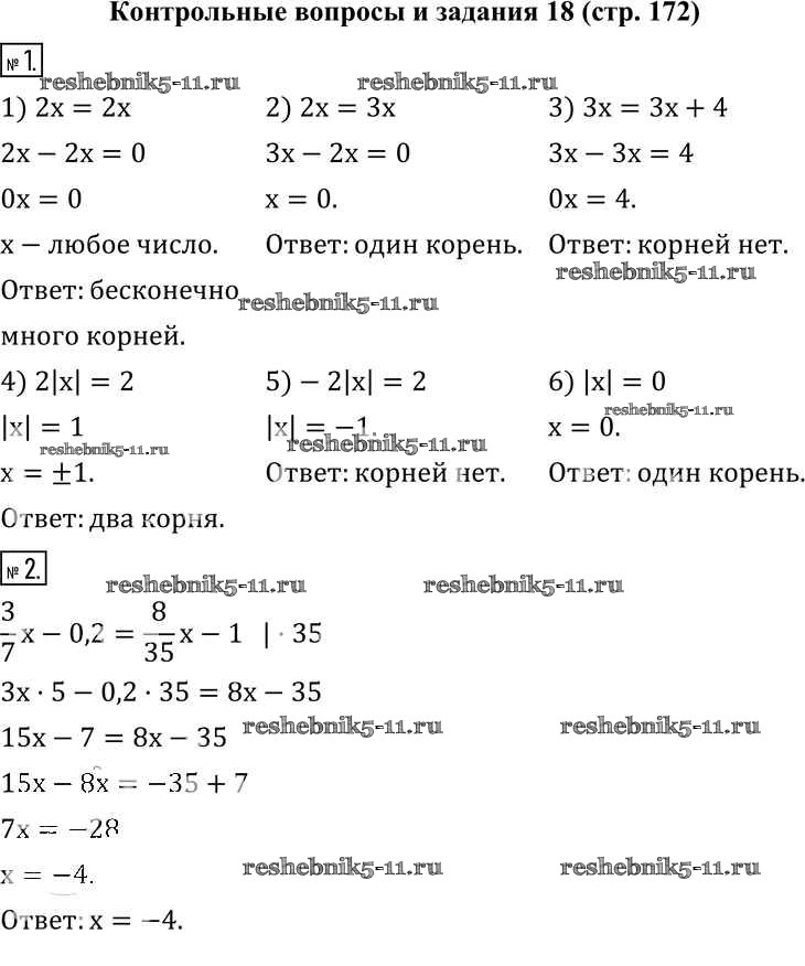 Готовая домашняя работа с ответами по Математике за 6 класс Муравин, Муравина Учебник Вертикаль Дрофа 2016 ФГОС - §18. Решение уравнений Контрольные вопросы и задания