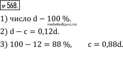 Готовая домашняя работа с ответами по Математике за 6 класс Муравин, Муравина Учебник Вертикаль Дрофа 2016 ФГОС - §19. Решение задач на проценты 568