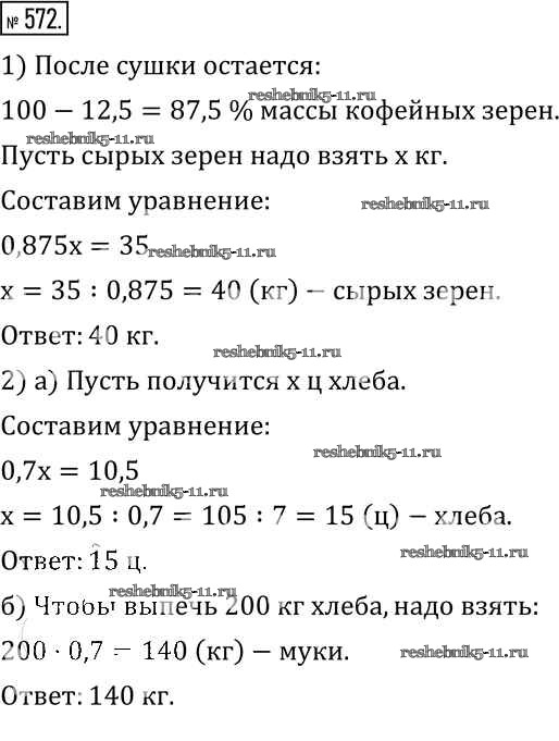 Готовая домашняя работа с ответами по Математике за 6 класс Муравин, Муравина Учебник Вертикаль Дрофа 2016 ФГОС - §19. Решение задач на проценты 572