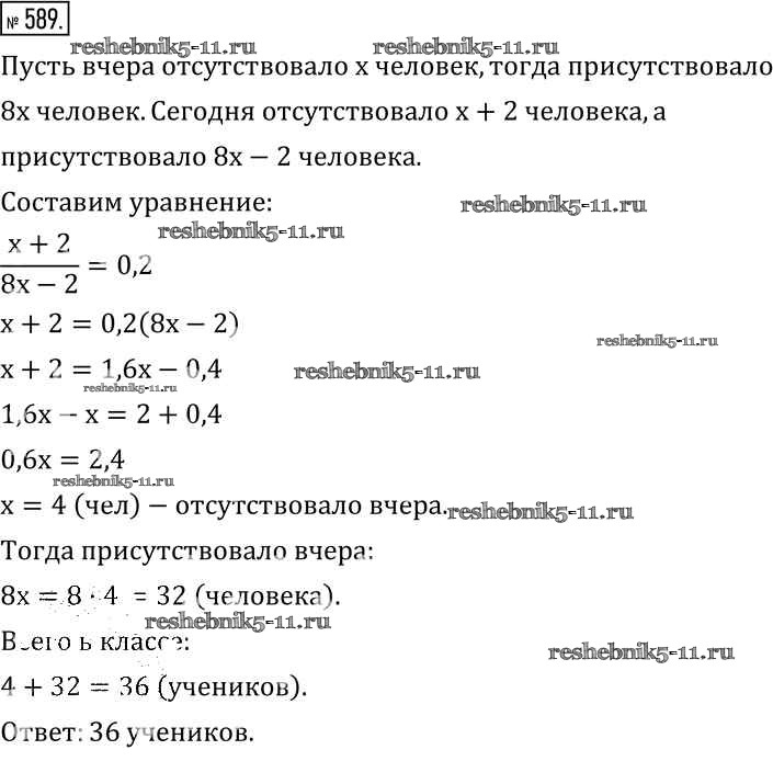 Готовая домашняя работа с ответами по Математике за 6 класс Муравин, Муравина Учебник Вертикаль Дрофа 2016 ФГОС - §19. Решение задач на проценты 589