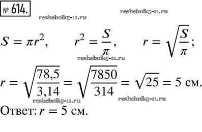 Готовая домашняя работа с ответами по Математике за 6 класс Муравин, Муравина Учебник Вертикаль Дрофа 2016 ФГОС - §20. Длина окружности и площадь круга 614