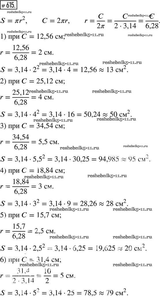 Готовая домашняя работа с ответами по Математике за 6 класс Муравин, Муравина Учебник Вертикаль Дрофа 2016 ФГОС - §20. Длина окружности и площадь круга 615