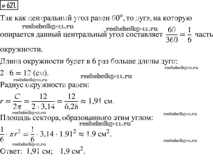 Готовая домашняя работа с ответами по Математике за 6 класс Муравин, Муравина Учебник Вертикаль Дрофа 2016 ФГОС - §20. Длина окружности и площадь круга 621