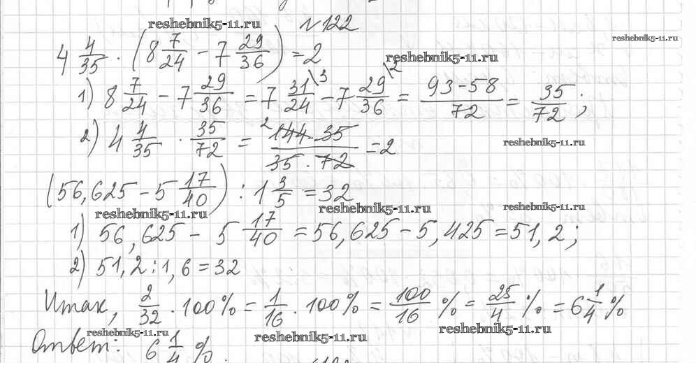 Готовая домашняя работа с ответами по Математике за 6 класс Мерзляк, Полонский, Рабинович, Якир Дидактические материалы Алгоритм успеха Вентана-граф 2017 ФГОС - Вариант 1 122