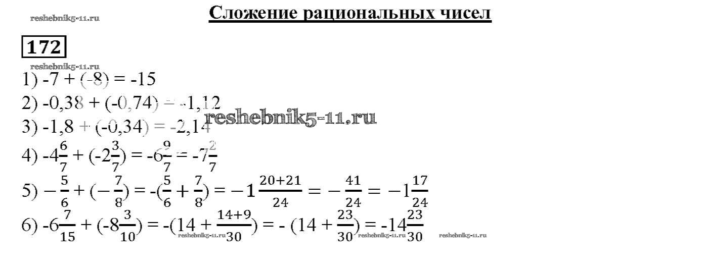 Готовая домашняя работа с ответами по Математике за 6 класс Мерзляк, Полонский, Рабинович, Якир Дидактические материалы Алгоритм успеха Вентана-граф 2017 ФГОС - Вариант 1 172
