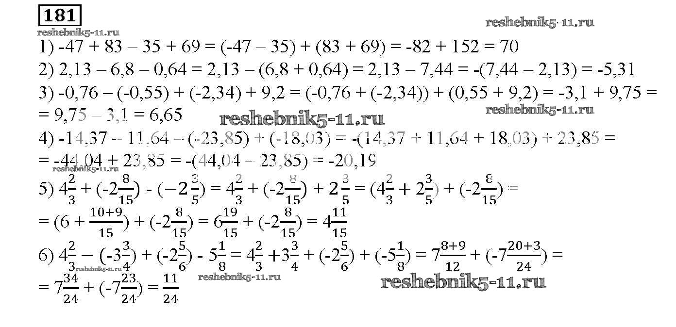 Готовая домашняя работа с ответами по Математике за 6 класс Мерзляк, Полонский, Рабинович, Якир Дидактические материалы Алгоритм успеха Вентана-граф 2017 ФГОС - Вариант 1 181