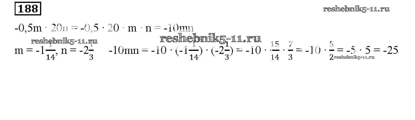 Готовая домашняя работа с ответами по Математике за 6 класс Мерзляк, Полонский, Рабинович, Якир Дидактические материалы Алгоритм успеха Вентана-граф 2017 ФГОС - Вариант 1 188