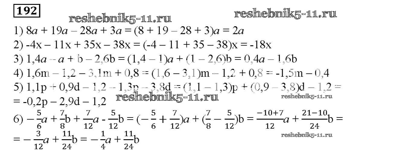 Готовая домашняя работа с ответами по Математике за 6 класс Мерзляк, Полонский, Рабинович, Якир Дидактические материалы Алгоритм успеха Вентана-граф 2017 ФГОС - Вариант 1 192