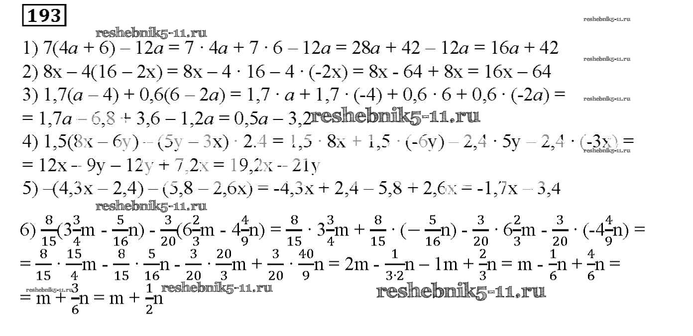 Готовая домашняя работа с ответами по Математике за 6 класс Мерзляк, Полонский, Рабинович, Якир Дидактические материалы Алгоритм успеха Вентана-граф 2017 ФГОС - Вариант 1 193