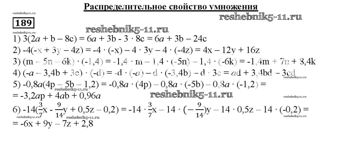 Готовая домашняя работа с ответами по Математике за 6 класс Мерзляк, Полонский, Рабинович, Якир Дидактические материалы Алгоритм успеха Вентана-граф 2017 ФГОС - Вариант 2 189