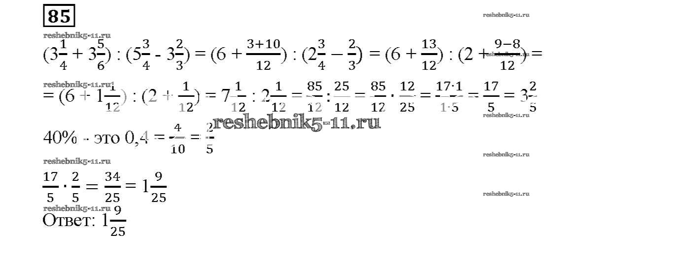Готовая домашняя работа с ответами по Математике за 6 класс Мерзляк, Полонский, Рабинович, Якир Дидактические материалы Алгоритм успеха Вентана-граф 2017 ФГОС - Вариант 2 85