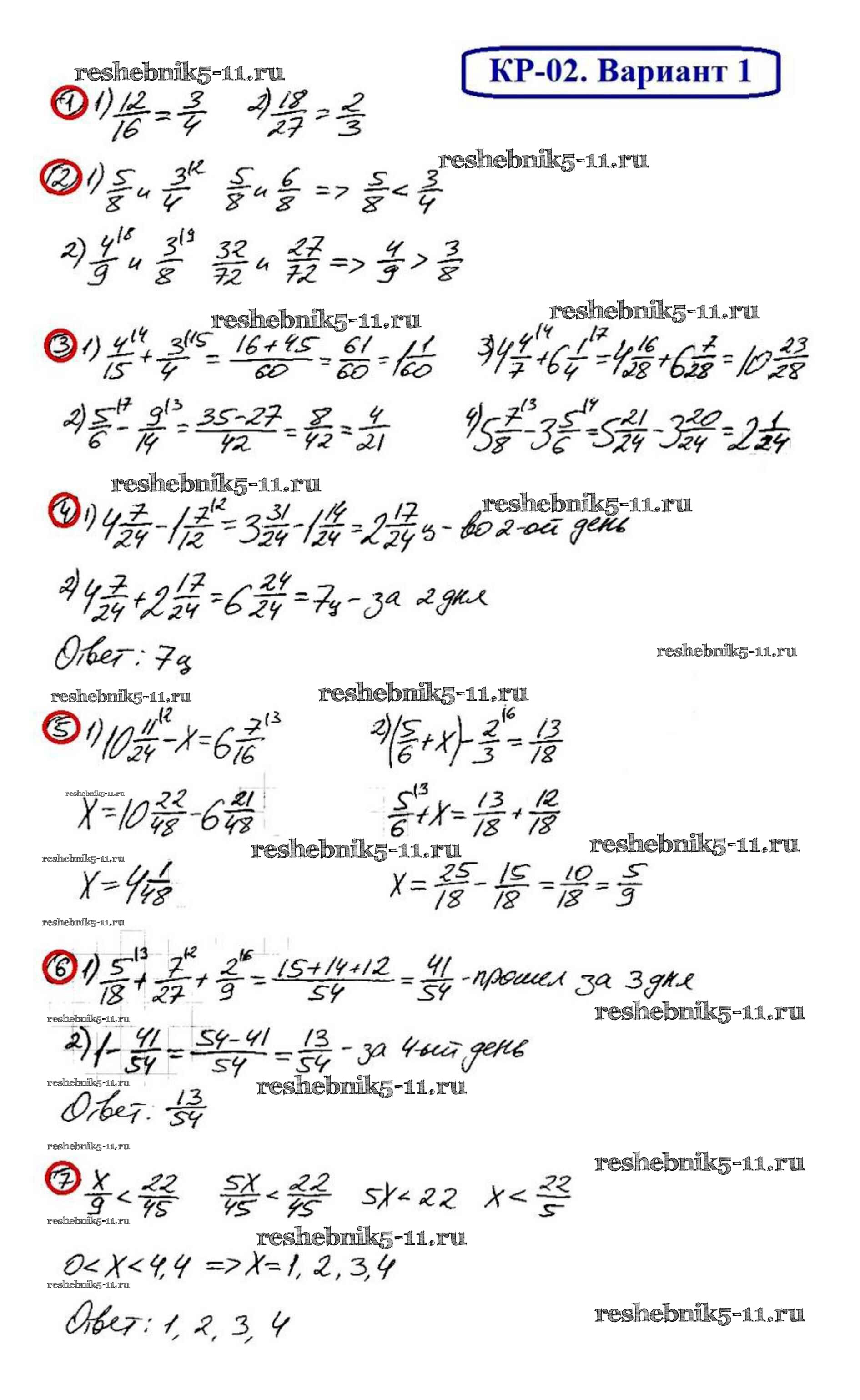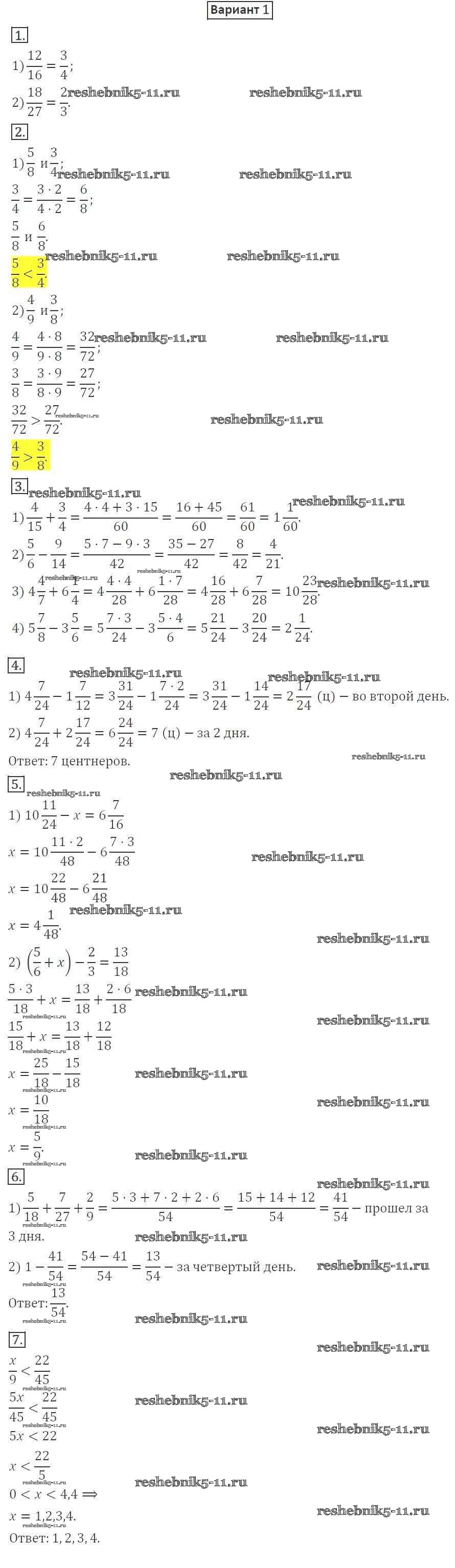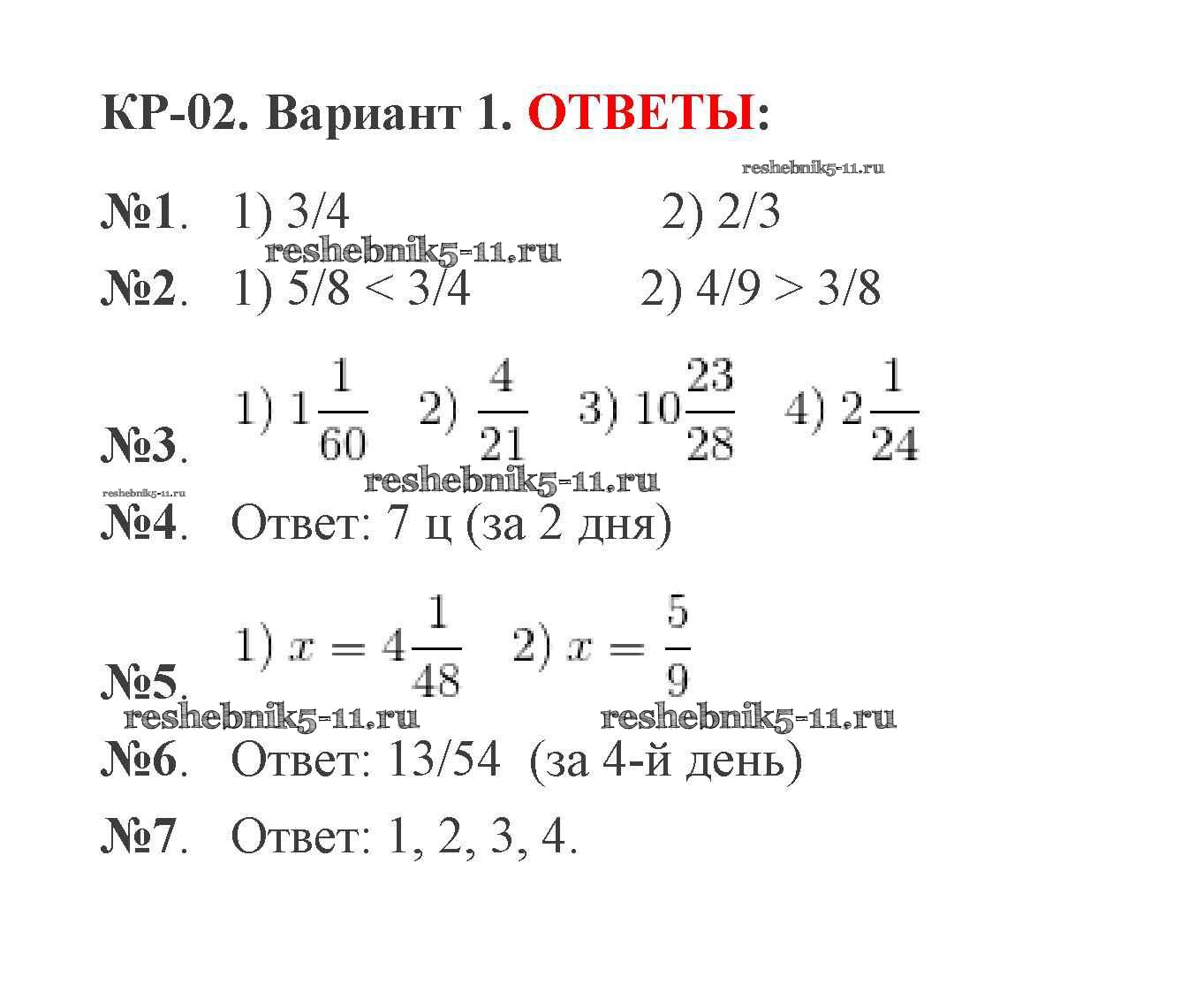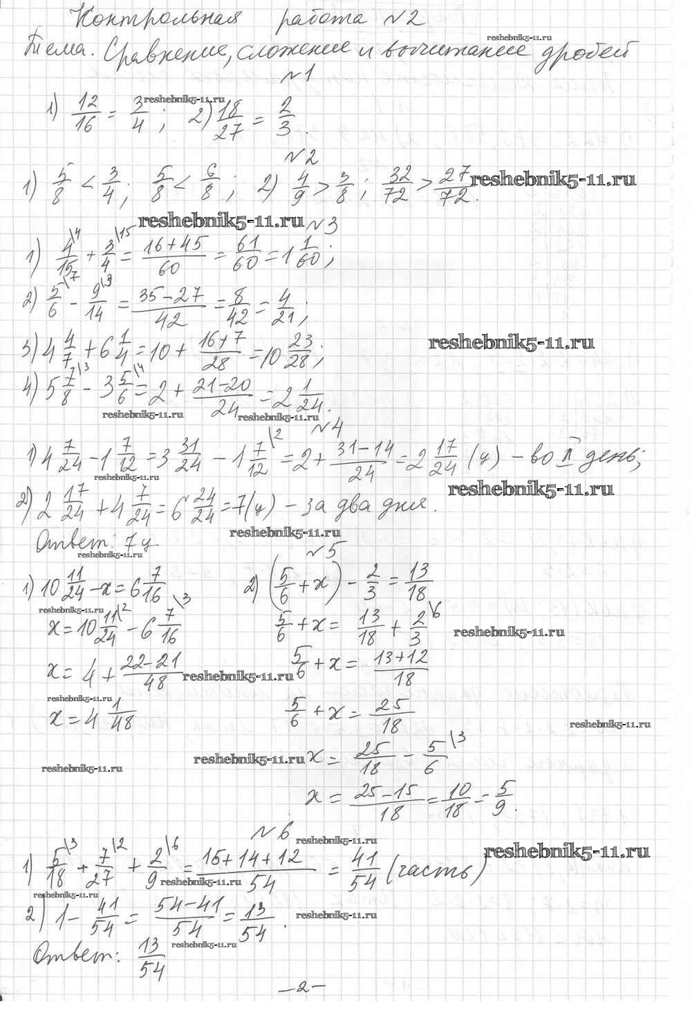 Готовая домашняя работа с ответами по Математике за 6 класс Мерзляк, Полонский, Рабинович, Якир Дидактические материалы Алгоритм успеха Вентана-граф 2017 ФГОС - КР-2. Варианты 1