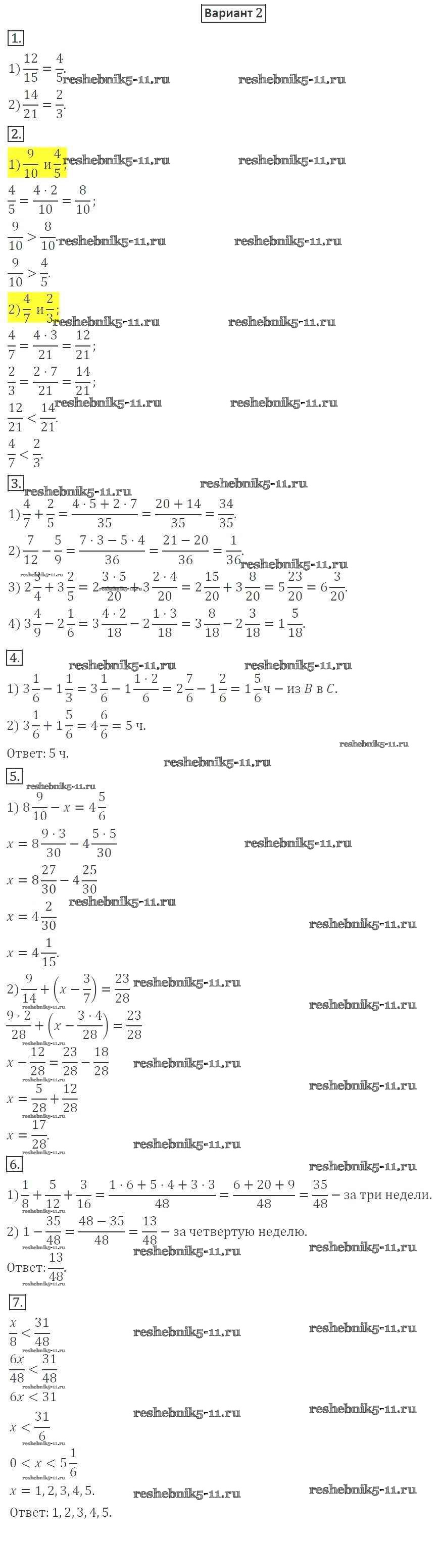 Готовая домашняя работа с ответами по Математике за 6 класс Мерзляк, Полонский, Рабинович, Якир Дидактические материалы Алгоритм успеха Вентана-граф 2017 ФГОС - КР-2. Варианты 2