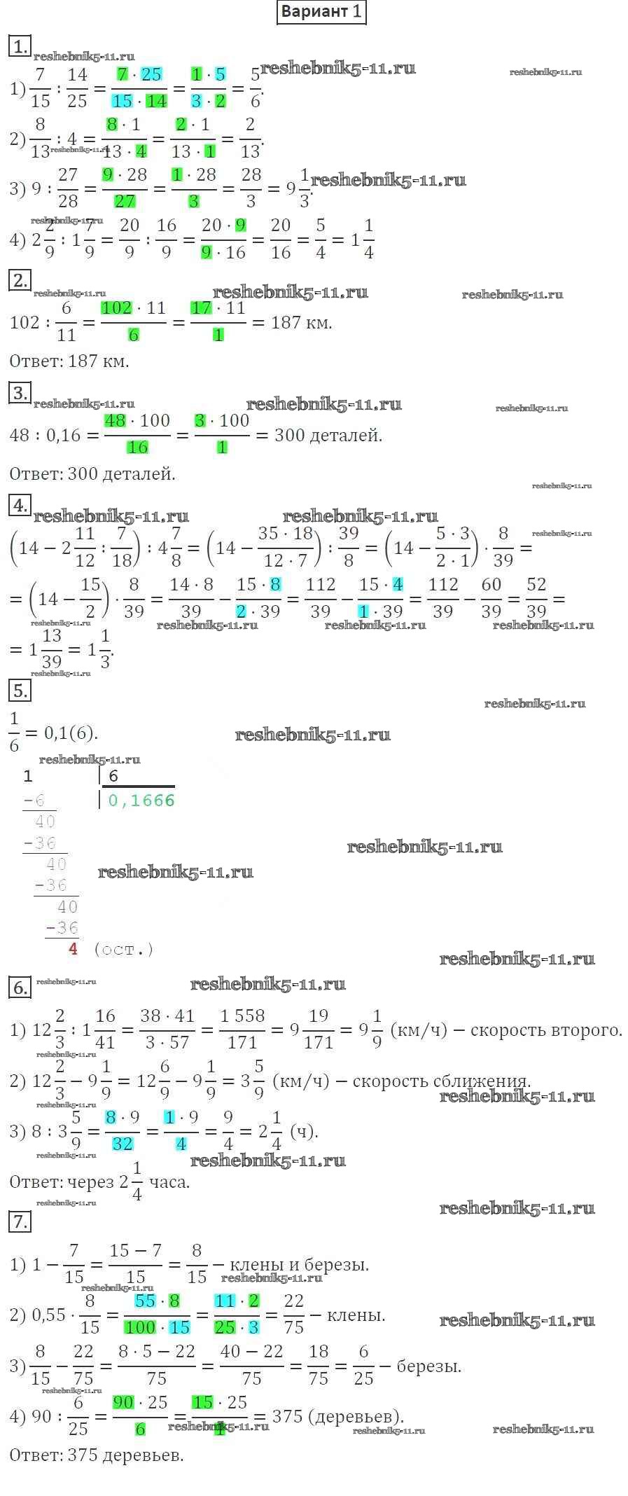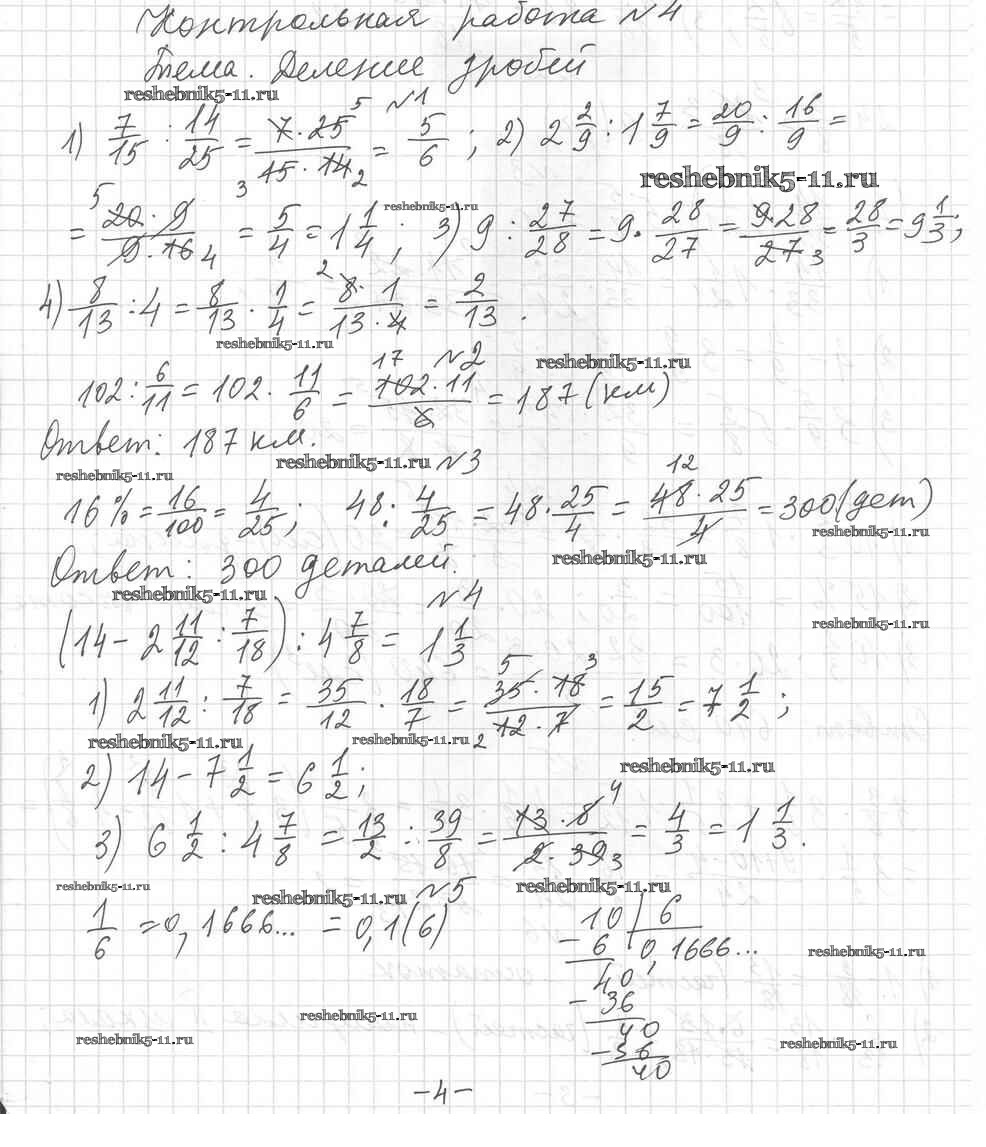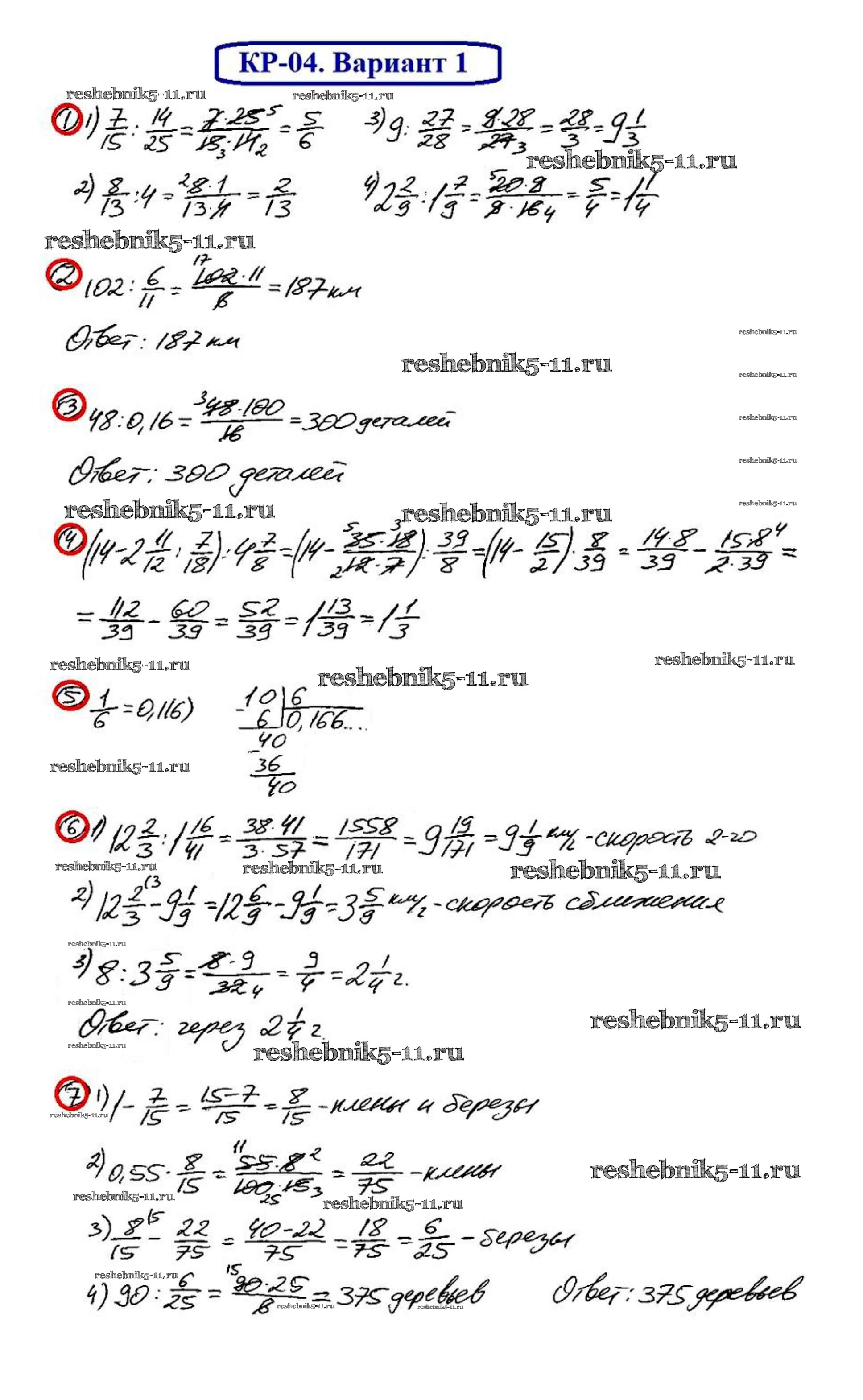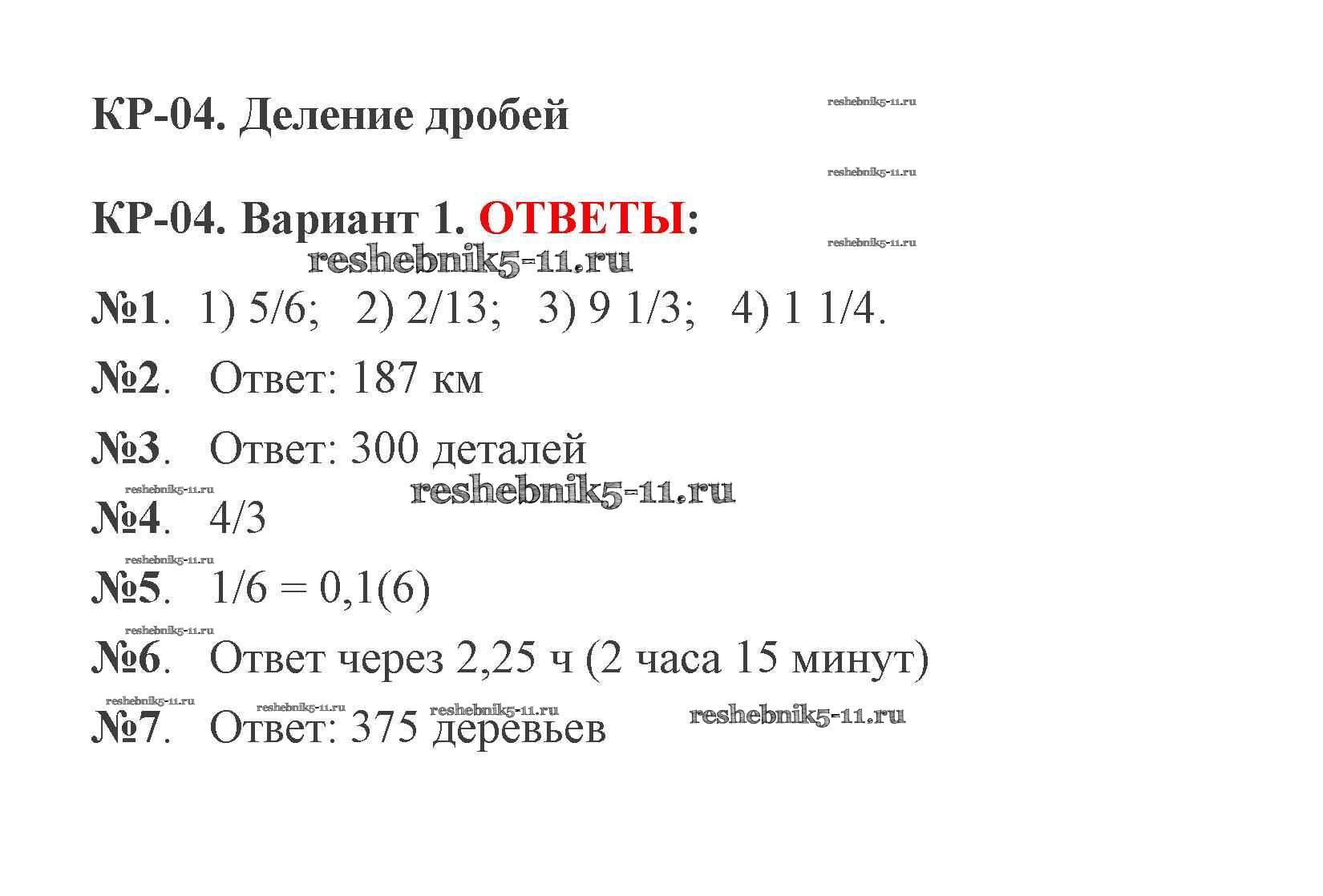 Готовая домашняя работа с ответами по Математике за 6 класс Мерзляк, Полонский, Рабинович, Якир Дидактические материалы Алгоритм успеха Вентана-граф 2017 ФГОС - КР-4. Варианты 1