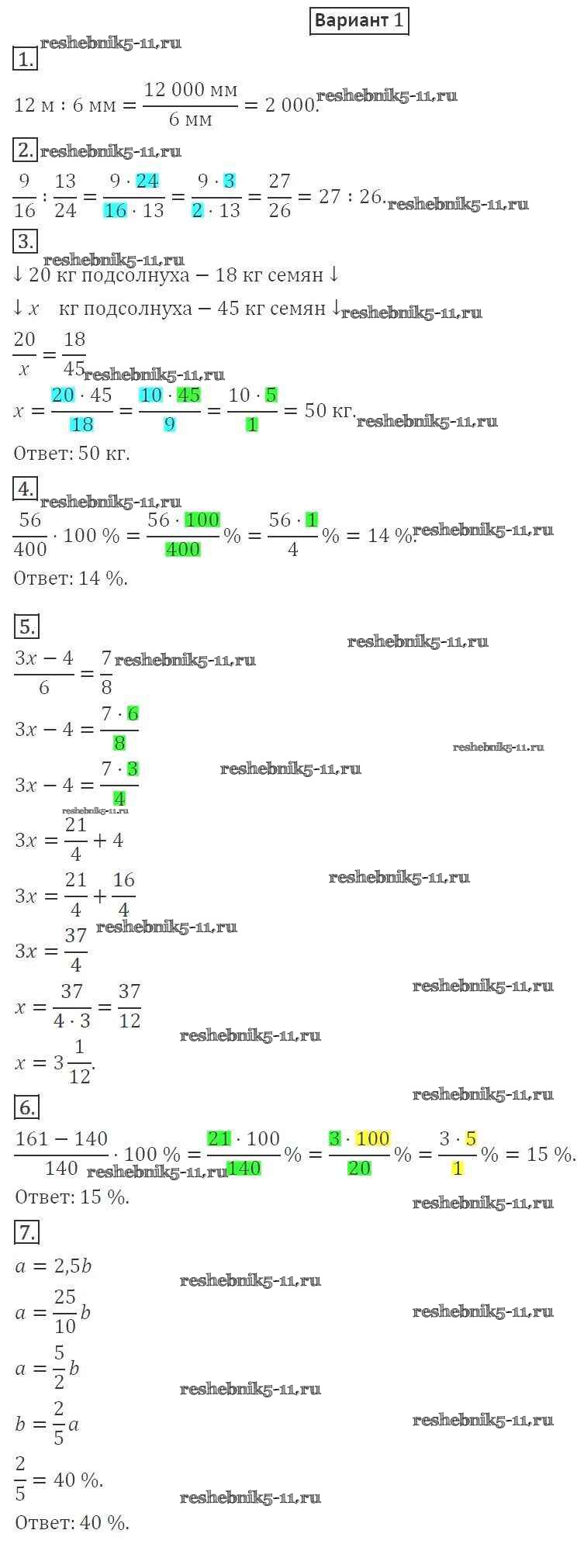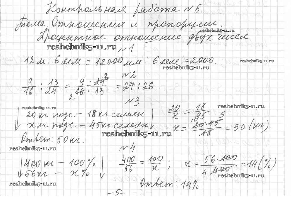Готовая домашняя работа с ответами по Математике за 6 класс Мерзляк, Полонский, Рабинович, Якир Дидактические материалы Алгоритм успеха Вентана-граф 2017 ФГОС - КР-5. Варианты 1