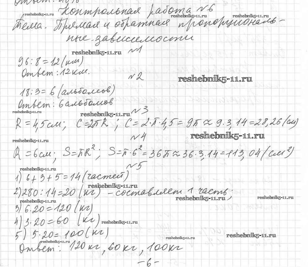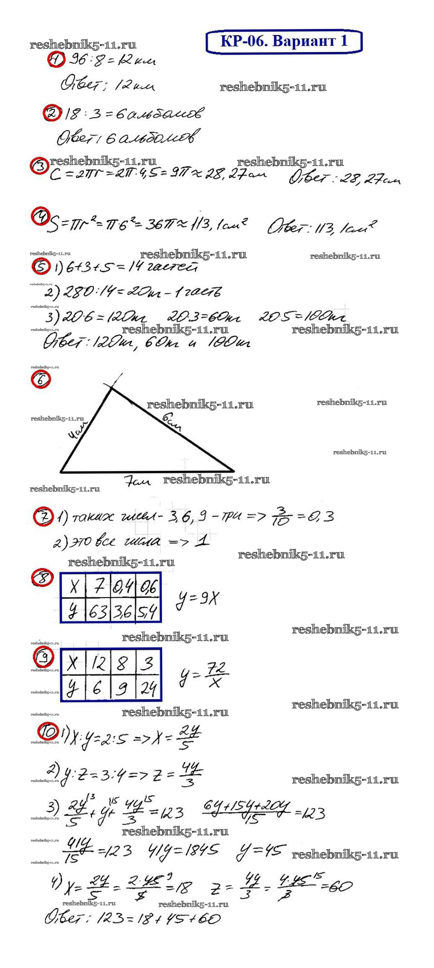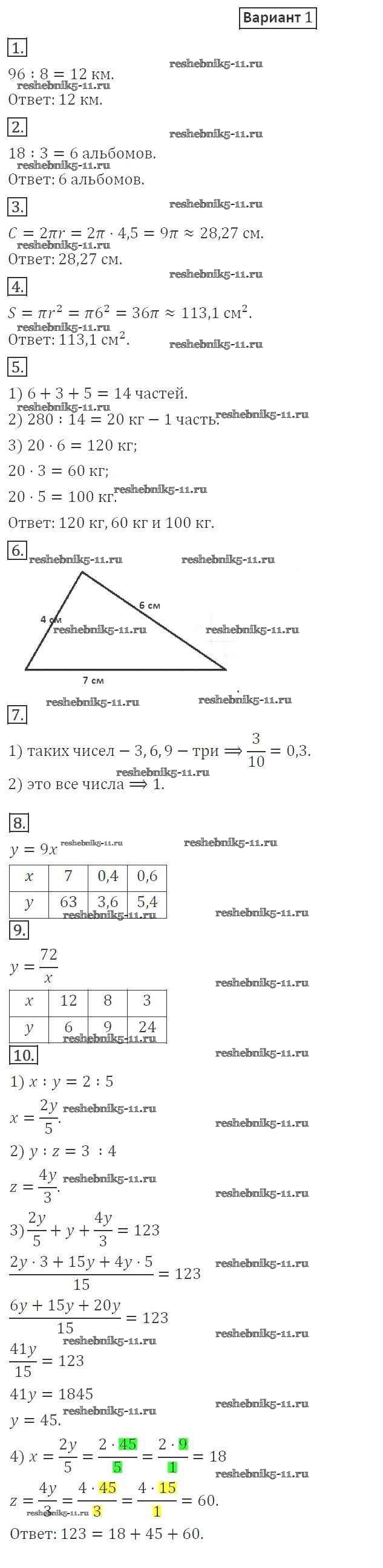 Готовая домашняя работа с ответами по Математике за 6 класс Мерзляк, Полонский, Рабинович, Якир Дидактические материалы Алгоритм успеха Вентана-граф 2017 ФГОС - КР-6. Варианты 1