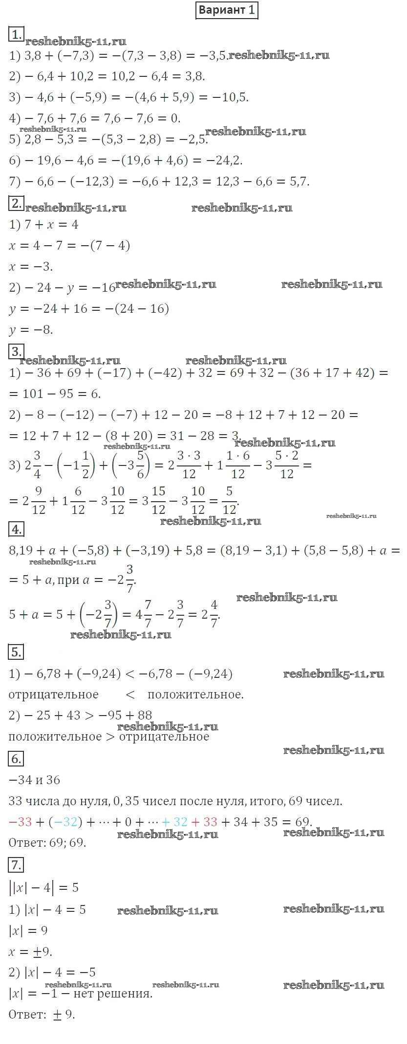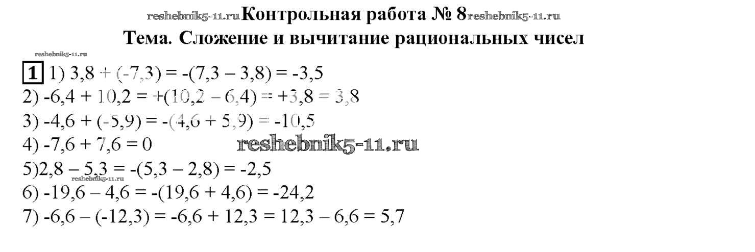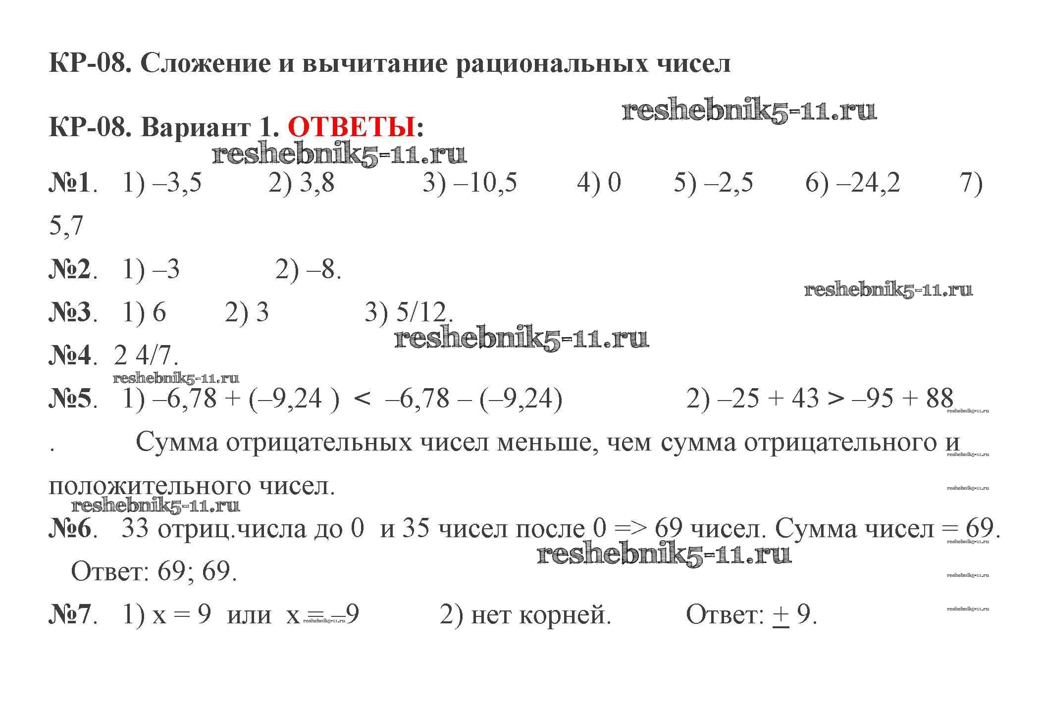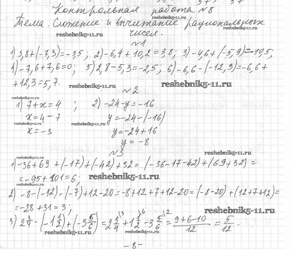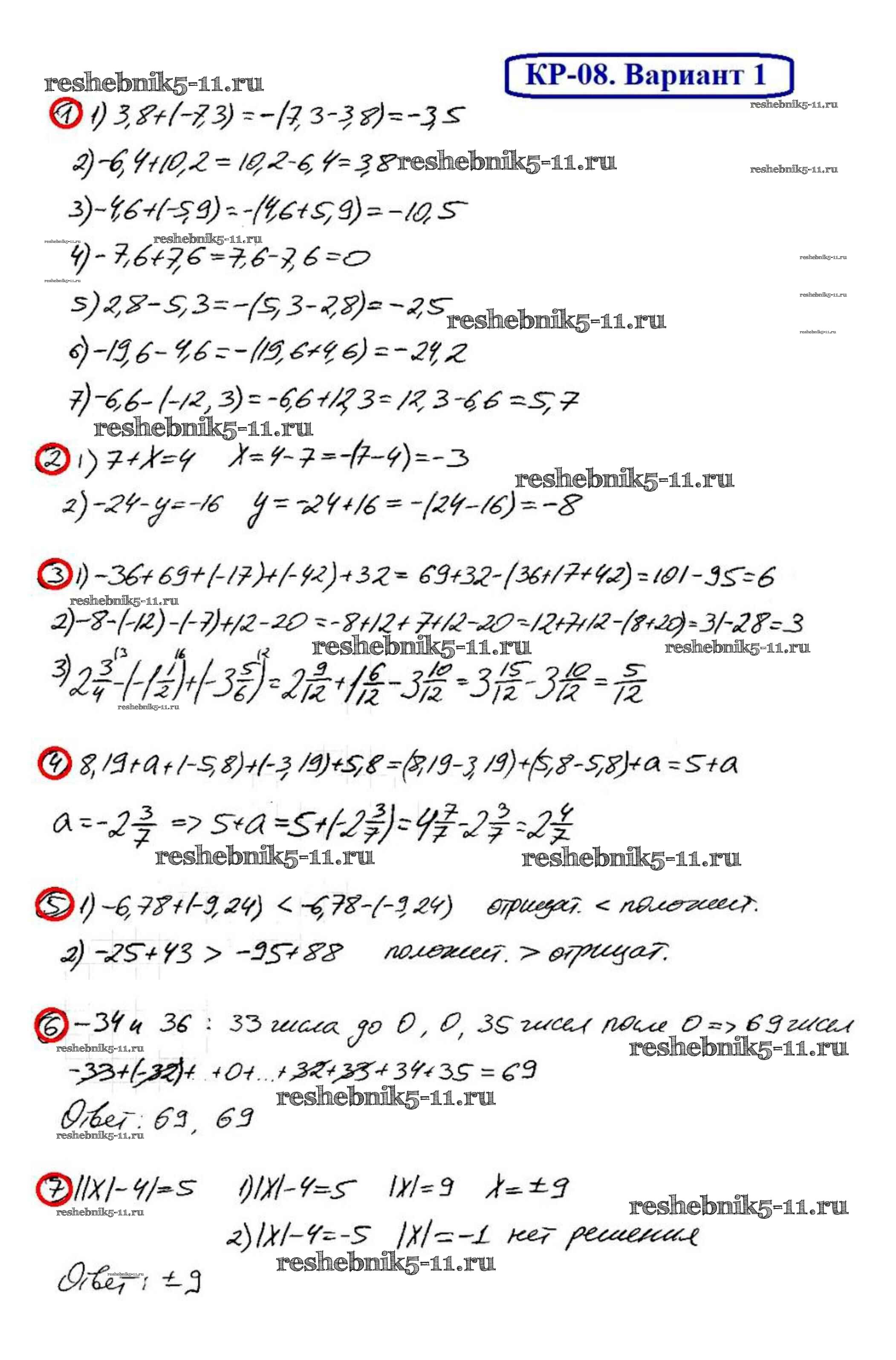Готовая домашняя работа с ответами по Математике за 6 класс Мерзляк, Полонский, Рабинович, Якир Дидактические материалы Алгоритм успеха Вентана-граф 2017 ФГОС - КР-8. Варианты 1
